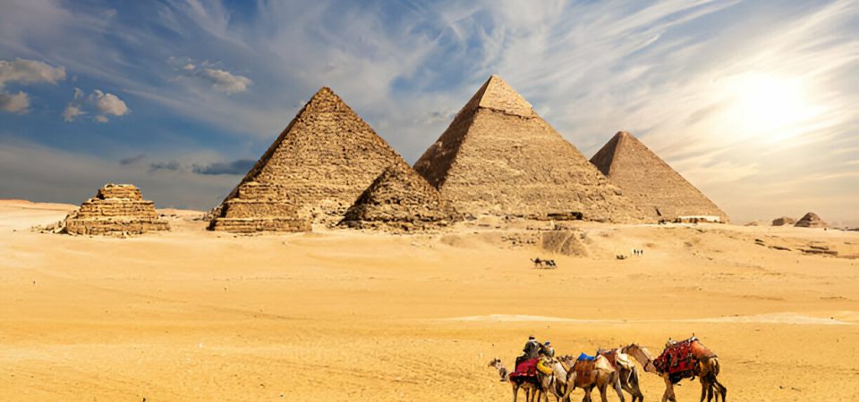The Giza Pyramids of Cheops, Chephren and Mykreinus and the Sphinx before visiting the Egyptian Museum with the largest collection of Egyptian antiquities in the world.
