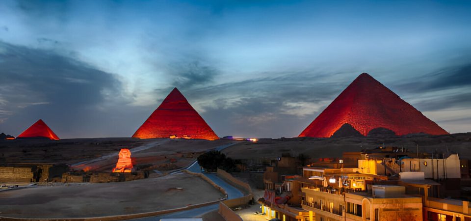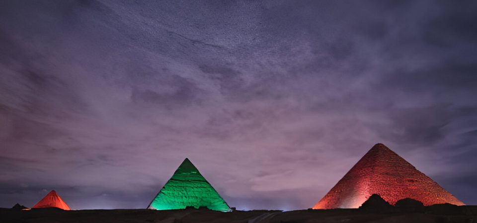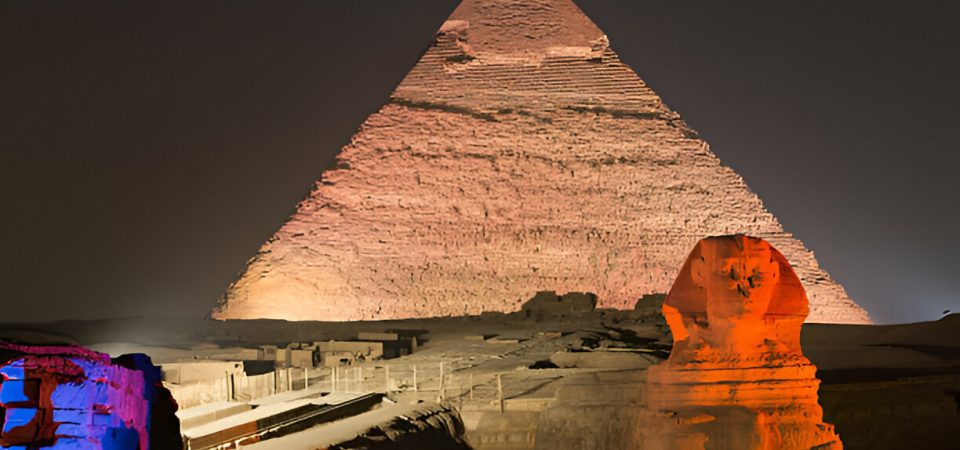 Nightly at the Pyramids of Giza to watching the pyramids and Sphinx are illuminated in amazing multi-colored lasers and listen to the booming music and commentary emanating from the Sphinx that tells the stories of ancient Egypt and the pyramids